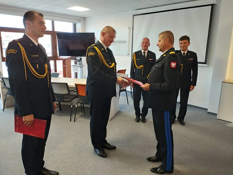 W uroczystości powołania na wyższe stanowiska służbowe udział wzięli również bryg. Tomasz Mądry Komendant Powiatowy PSP w Ząbkowicach Śląskich oraz st. kpt. Przemysław Wróbel Naczelnik Wydziału Kadr KW PSP we Wrocławiu.