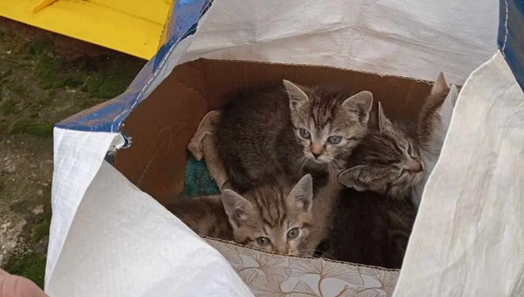 4 przemarznięte, przerażone i niezwykle głodne kociaki są już pod dachem TOZ-u. Nie wiadomo, ile przebywały w tej reklamówce.