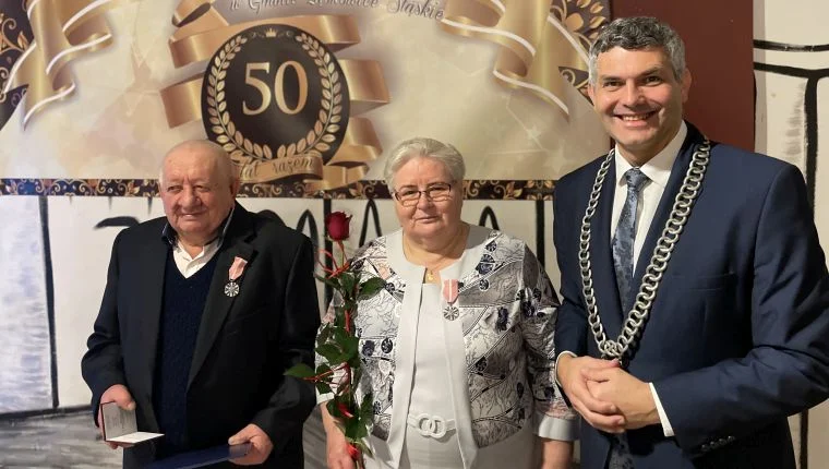 Złote Gody odbyły się w czwartek, 14 grudnia w Ząbkowickim. Medal za Długoletnie Pożycie Małżeńskie stanowi nagrodę dla osób, które przeżyły co najmniej 50 lat w jednym związku małżeńskim. Odznakę Medalu za Długoletnie Pożycie Małżeńskie w imieniu prezydenta Rzeczypospolitej Polskiej mogą wręczać jedynie określone ustawowo osoby (tj.: prezes Rady Ministrów, ministrowie, kierownicy urzędów centralnych, wojewodowie) oraz zastępcy tych osób, a także: marszałek województwa, starosta, wójt, burmistrz lub prezydent miasta. Nasz burmistrz wręczył medale, po czym sfotografował się z każda z par. Zdjęcia w galerii.