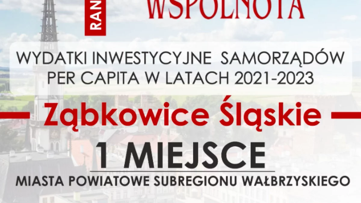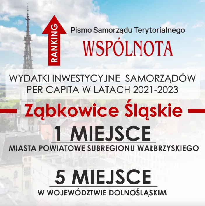 W skali kraju, Ząbkowice uplasowały się na 35. miejscu. To kolejne potwierdzenie dynamicznego rozwoju miasta, które sukcesywnie pnie się w górę w klasyfikacji inwestycyjnej.