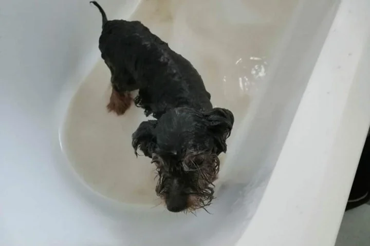Maleńki staruszek bez zębów. Tak zabiedzony, ze można liczyć kostki na drobnym ciałku. Tak brudny, że trzeba było kąpać go 4 razy, a potem przez kolejna godzinę wycinać dredy i kołtuny. Na plecach narośl, którą musimy skonsultować z weterynarzem. Tak głodny, że musieliśmy dzielić na mniejsze porcje, jadł tak łapczywie