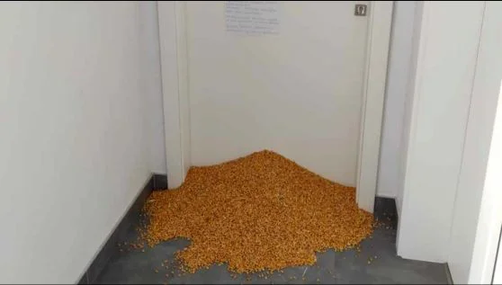 Ta paczka to rozsypana kukurydza. Była też wiadomość. Przyklejona na dwóch kartkach na drzwiach biura poselskiego.