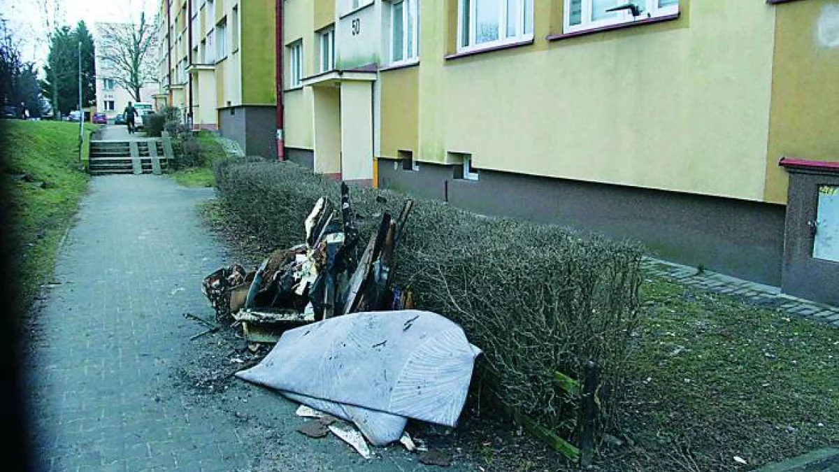 Nie stwierdzono zalegającego piasku ani innych nieczystości w obrębie budynku. Jedyne pozostałości to elementy spalonego mieszkania, które po konsultacji z Policją zostały uprzątnięte
