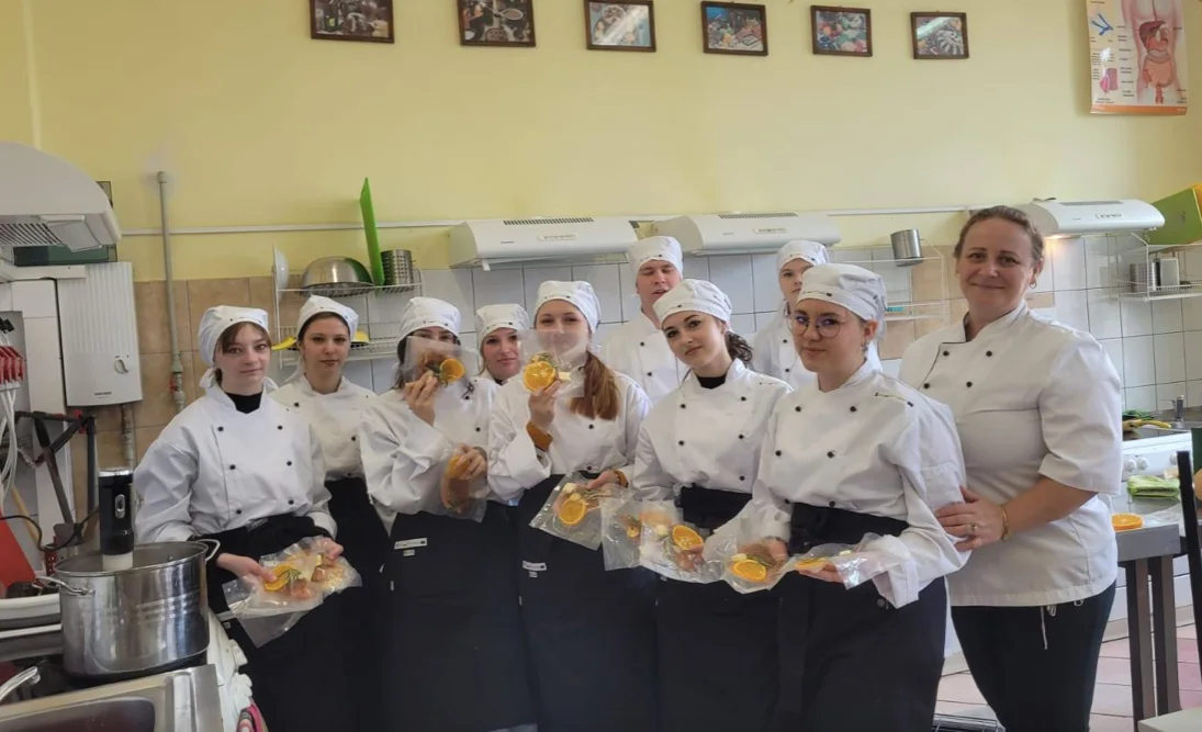 Pierwszy z kursów, „Przygotowanie potraw zgodnie z trendami rynkowymi i zasadami zdrowego żywienia", pozwolił uczniom wejść głębiej w świat nowoczesnej gastronomii. Nauka obejmowała zarówno nowatorskie techniki kulinarne, jak i kreatywne komponowanie potraw, które nie tylko dobrze smakują, ale i wpisują się w aktualne potrzeby świadomych konsumentów. Zdrowo, smacznie i z pomysłem – tak właśnie wyglądały efekty ich pracy.