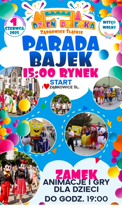 Największym wydarzeniem tego dnia będzie Parada Bajek, która wystartuje o godz. 15:00 z rynku w Ząbkowicach Śląskich. Ulicami miasta przemaszerują postacie z ulubionych bajek, wśród których nie zabraknie kultowych bohaterów. Będzie to nie lada gratka dla małych fanów animacji i klasycznych opowieści.