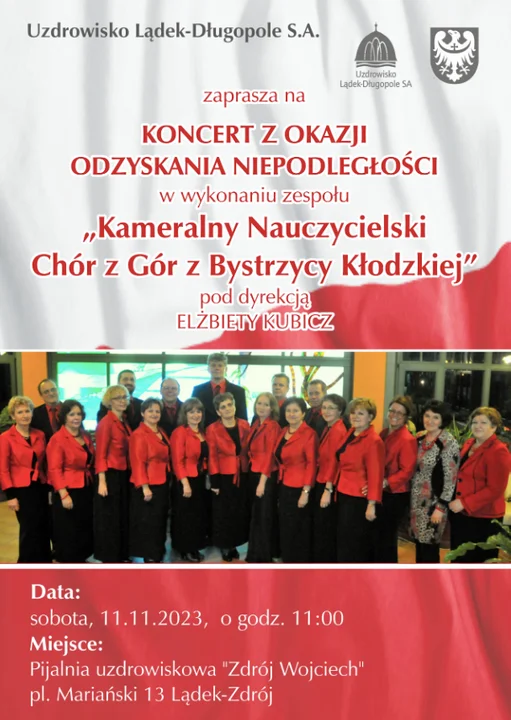 Przed nami 11 listopada. To właśnie tego dnia z okazji obchodów Święta Niepodległości Zdrój Wojciech w Lądku-Zdroju zaprasza o godzinie 17.00 na Koncert z Okazji Odzyskania Niepodległości.