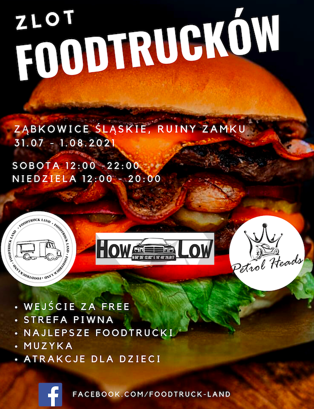 Świetne samochody, dobra muzyka, przyjazna atmosfera - Food trucki będą stacjonować przy Ruinach Zamku w Ząbkowicach Śląskich, w godzinach: sobota 12:00 - 22:00, niedziela 12-00 - 20:00. Natomiast lista food trucków, można śledzić na fanpagu Foodtruck Land!